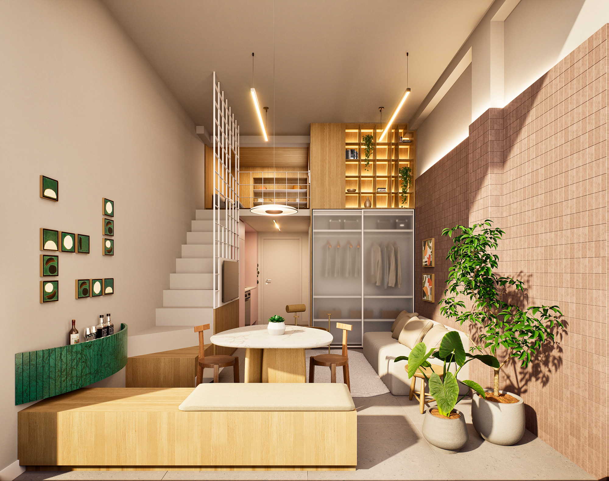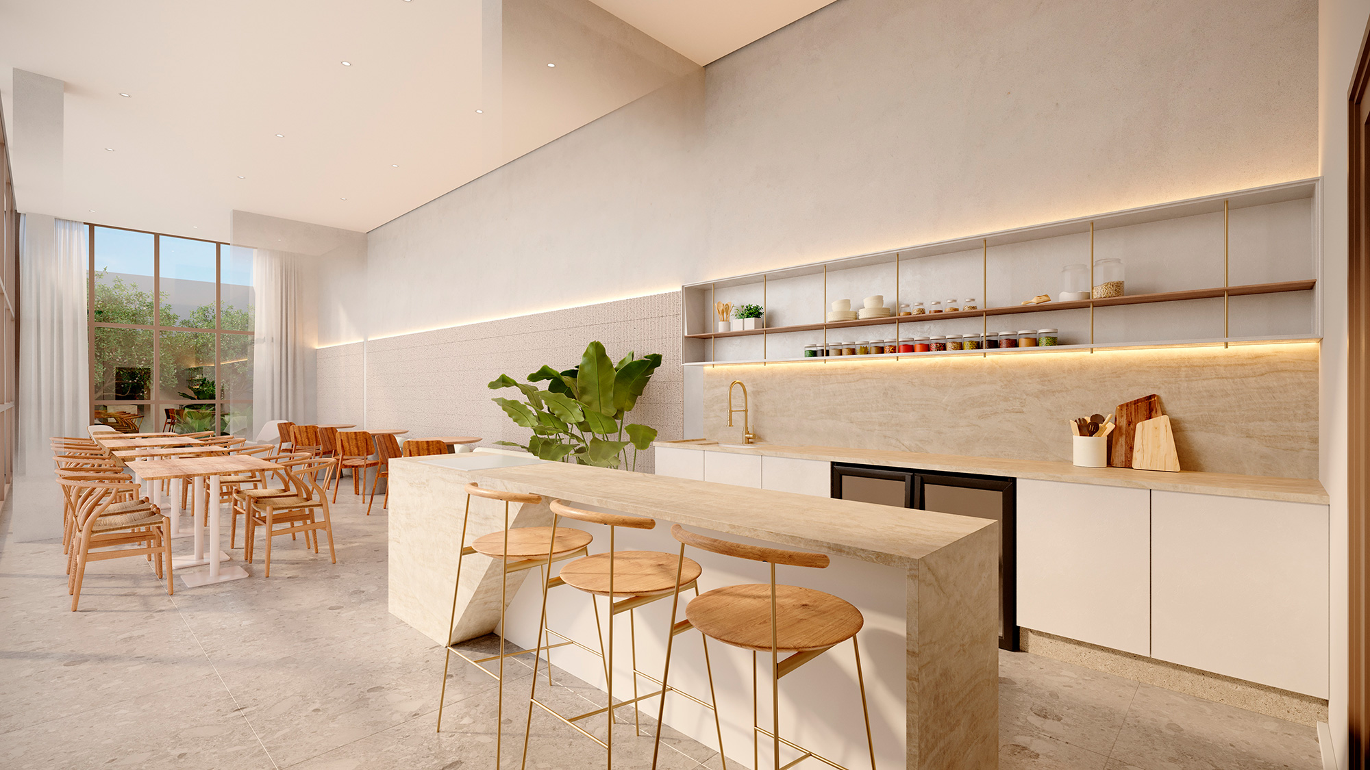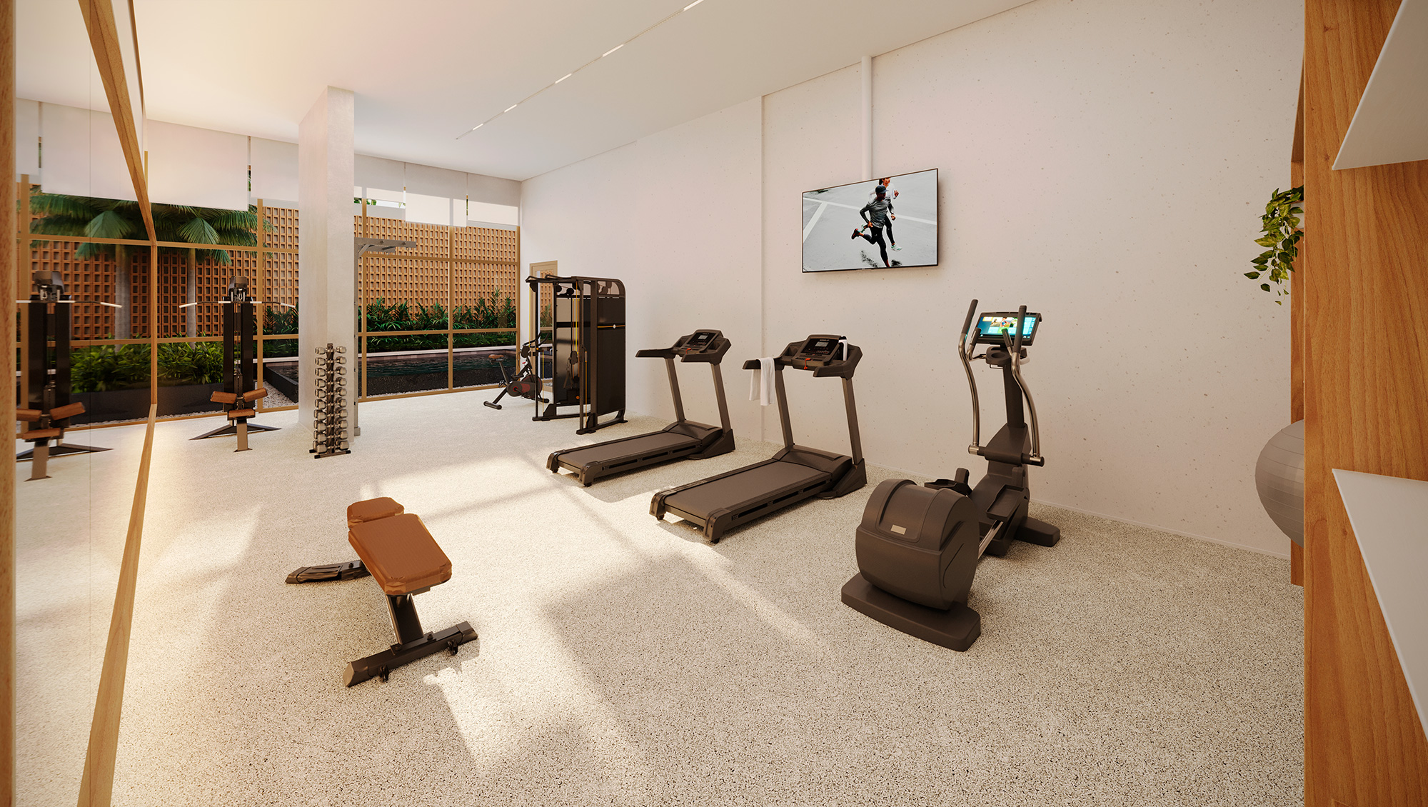 O Eleva Harmonia foi pensado de forma meticulosa, com o objetivo de desenvolver um empreendimento onde a harmonia e a elegância se entrelaçam de maneira singular. Para alcançar esse objetivo, utilizamos materiais naturais que não apenas embelezam, mas também criam uma sensação de conexão com a natureza. Inspirados na arquitetura do Eleva, projetamos ambientes clean e sofisticados para proporcionar um cenário onde a tranquilidade e o conforto se tornam a essência da experiência dos moradores. O destaque deste projeto se revela no 6º pavimento. Nesse espaço, concebemos ambientes dedicados ao bem-estar dos moradores. Aqui, você encontrará espaços destinados a práticas de yoga, sessões de massagem relaxante e uma sauna que não apenas relaxa, mas também eleva o espírito, além de contar com uma vista deslumbrante. Cada detalhe no Eleva Harmonia foi pensado para criar um ambiente generoso e acolhedor, onde o equilíbrio entre a modernidade e o conforto fosse a nota dominante. Este é um lugar onde os materiais nobres e exclusivos se unem em perfeita harmonia com o bom gosto e a sofisticação.